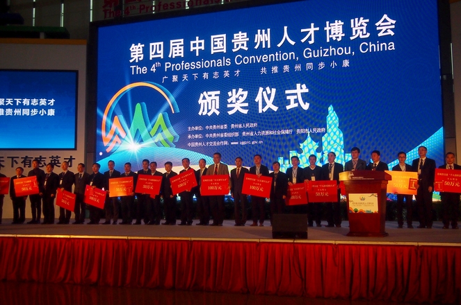 開幕式上,與會領導和嘉賓為入選2015年度貴州省“百千萬人才引進計劃”的“百人領軍人才”和“千人創新創業人才”頒發證書和獎金,個人最高獎勵100萬元,體現貴州省對高層次人才的尊敬與重視。同時,還集中簽約了20個引進的高層次人才及項目。