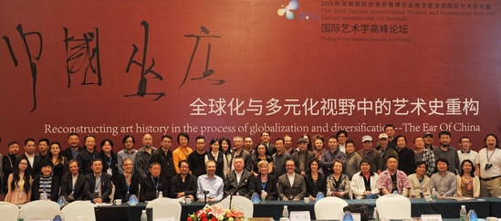 藝術雙年展中一個高規格的內容即“中國坐莊——全球化與多元化視野中的藝術史重構”的藝術學術論壇,吸引了包括《美國藝術》雜志主編理查德•凡,澳大利亞維多利亞州多元文化委員會主任吉尓•摩根,英國伯明翰城市大學藝術校區校長、藝術全球化專家、南安普頓大學教授喬納森•哈裏斯,澳大利亞澳大利亞維多利亞州多元文化委員會主任拉金瑪格麗特•維羅尼卡,美國芝加哥大學藝術學藝術教育系系主任教授約翰•普魯夫,澳大利亞墨爾本美術學校校長蔣亞萍,英國南安普頓大學博士馮潔,巴黎亞洲當代藝術中心創始人陳瀛島,韓國城南藝術中心主任樸天男,巴黎高等美術學院科學發展和文化部門負責人凱西• 阿爾羅,舊金山大學藝術教育學院院長Marybeth Tereszkiewicz,澳大利亞視覺委員會主任、新南威爾士大學美術學院院長伊恩•霍華德,前皮爾卡丹藝術中心負責人、巴黎高等藝術學院ICART校長尼古拉斯,法國文化部專員伊莎貝爾等國際藝術界、學術界的專家學者親臨現場,與近百名中國藝術家共聚一堂,就“藝術的全球化之中如何避免多元化的淪喪”“非西方體系之中的當代藝術是否成立、如何建構自己的理論形態”“藝術史書寫之中的主體意志與客觀性”“中國本土藝術現代化的理論與邏輯”和“追認與反制:從漢字/書寫的角度看待西方抽象表現主義”五個論題進行了系列的闡述和深度的研討。