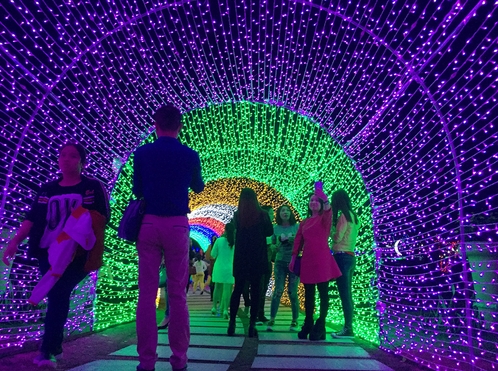 據了解,每晚6點,農科奇觀將“爆燈”開園,從園區入口處開始布置炫麗彩燈,一路指引遊客到斑駁陸離的1.8萬平方米花海,讓遊客自由穿越夢幻般的時空隧道,在奇趣驚豔的造型前瘋狂自拍,盡情暢遊在多彩美麗的燈光世界裏,在花影燈海中度過一個不一樣的夜晚。