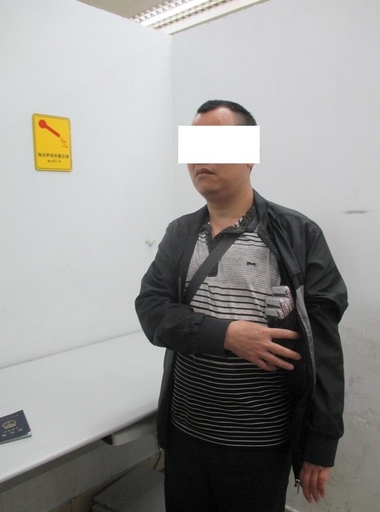 當日上午11點多,中等身材、身穿黑色休閑外套的中年男子蘇某走進拱北口岸旅檢進境大廳。蘇某隨身只帶了一個斜挎包,並未攜有大件行李,未向海關申報,但舉止略有不自然。關員發現蘇某的外套似乎有異常的重物壓墜感,與此前的“口袋哥”案件較為相似,於是果斷將蘇某截查。在詢問過程中,來自清遠的蘇某承認自己身上帶有手機,並從其外套左側內袋和右側外袋中分別取出5部和1部粉紅色手機。蘇某稱,這批手機是他在澳門大三巴附近的手機店購買的。目前蘇某因涉嫌走私已被緝私部門立案處理,涉案物品將被罰沒。