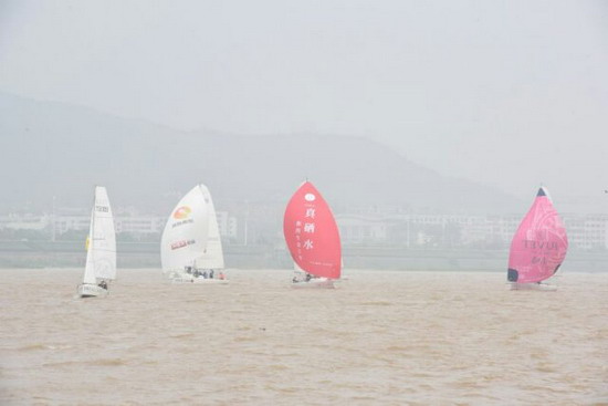 試水儀式上,“真硒水”號帆船領頭,其余帆船排成一排,從賽事起點裕湘紗廠出發,至比賽終點橘子洲頭,在水域上進行了比賽練習和巡游彩排。雖然是前期彩排,但運動員都練習得非常認真。