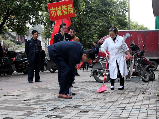 3月11日市城管局局長謝萬春帶頭開展彎腰行動攝影潘新杰