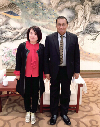 (圖片說明:在天津博物館會見廳,聽到本報記者曾赴斯里蘭卡參觀考察,對錫蘭之旅非常難忘,斯里蘭卡駐華大使卡魯納塞納·科迪圖瓦庫愉快地與本報記者邢寶華合影留念。)