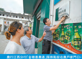 制,9月底該行與省財保已專門對「金穗油茶貸」保險項目專屬承保方案聯合發文,對「金穗油茶貸」實行財產保險。三是掛點扶貧機制。建立扶貧聯繫點,實行駐村幫扶,行領導幫扶貧困戶,截至12月末,貧困地區的各級行共建立駐村聯繫點102個,幫扶貧困戶3.2萬戶,在貧困地區開展了「送政策、送溫暖、送金融知識」下鄉活動。農行江西分行專門制定「進村入戶工作方案」,二級分行、縣域支行和鄉鎮網點專人帶隊進村入戶,全面走訪轄內農業產業化龍頭企業、農民專業合作社、家庭農場、農村專業大戶及貧困農戶。該行派出近千名干部,總共走訪了1000多個鄉鎮、為1000多家涉農企業、10000多戶農戶建立了經濟檔案和信貸臺賬。該行員工進村入戶所到之處,群眾紛紛贊揚,「以前老表上門求貸,現在農行下鄉送貸,蘇區干部作風又回來了!」