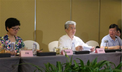 長沙市委宣傳部長張湘濤講話(中)、常務副部長趙柏林主持(右)、天心區委宣傳部長李曦(左)進行區位對接