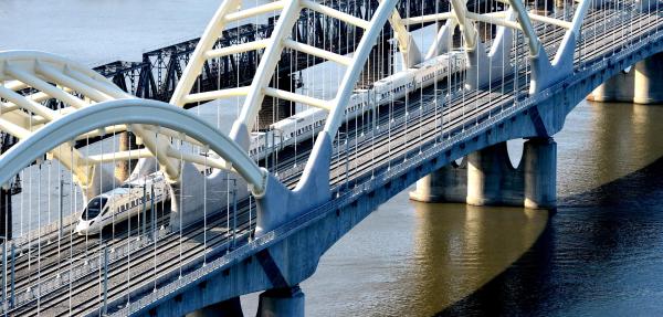 图为高铁列车驶过哈齐高铁松花江特大桥。黑龙江日报记者 陈宝林摄