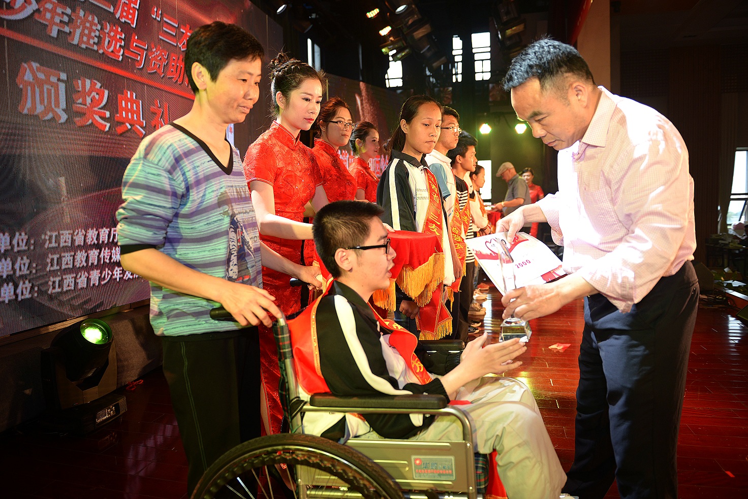 江西教育传媒集团董事长贺林香给自强少年颁奖。