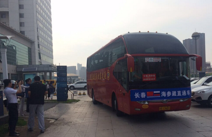 同時,在俄羅斯海參崴的勝利廣場,另一臺載著30名俄羅斯游客的旅游巴士直通車也正式發車。自此,計劃每周各一班的長春-海參崴雙向國際旅游巴士直通車正式通車。