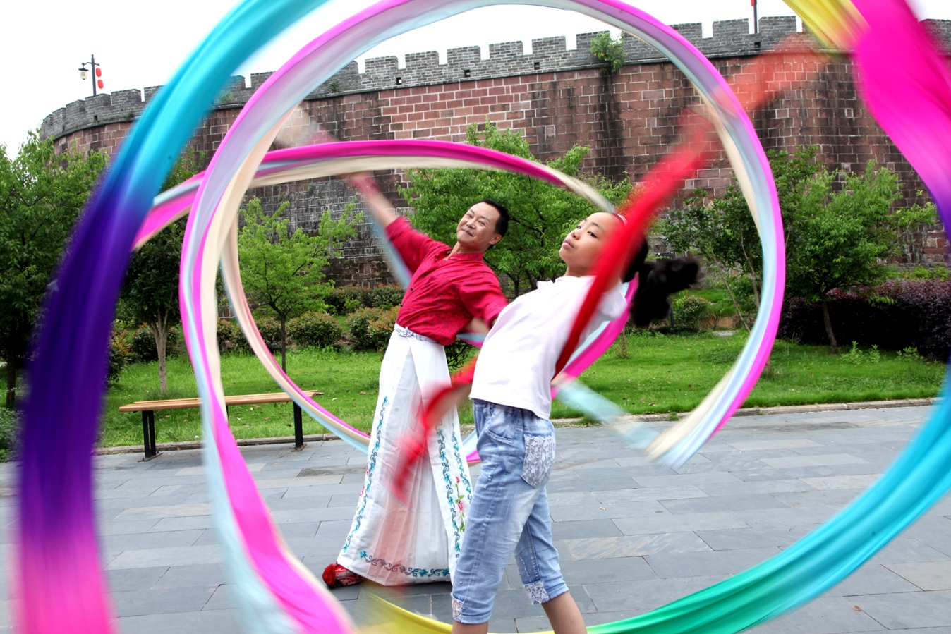 【香港商報网訊】記者吳敏 通訊員吳建平報道:6月18日,安徽歙縣文化館干部、黃山市徽劇傳承人方全富在徽州古城與女兒方鑫演練徽劇。今年40歲的方全富自幼喜歡戲曲,16歲從省藝術學校黃梅戲表演專業畢業后跟師研究徽劇,多次參加北京、上海等城市演出并獲獎。近三年在學校、社區傳承徽劇得到認可,有50名“學徒”能夠獨立表演徽劇。