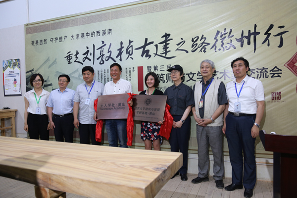 交流會上,單霽翔院長等領導、專家還分別給“土人學社”、“北京大學建築與景觀學研基地”、“中國建築學會建築攝影專業委員會徽州西溪南攝影基地”等機構落戶西溪南揭牌。