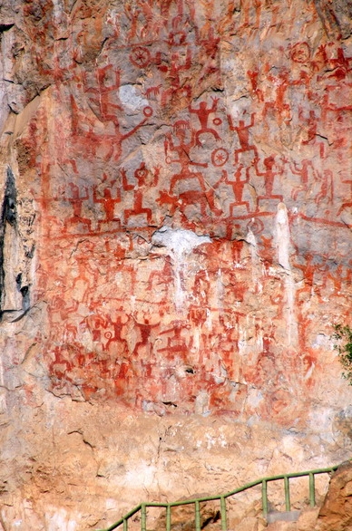 花山,壯語稱為pay laiz(岜萊),即畫得花花綠綠的山,是廣西崇左市寧明縣境內一座峰巒起伏的斷岩山。花山岩畫是左江流域岩畫群的代表,也是目前為止中國發現的單體最大、內容最豐富、保存最完好的一處岩畫,是戰國至東漢時期嶺南左江流域壯族先民駱越人巫術活動遺留下來的遺跡、國內外著名的古代塗繪類岩畫點,至今己有1800—2500年的曆史。據有關專家考證,花山岩畫的繪制年代早期可追溯到春秋戰國時期,曆經了戰國、西漢、東漢等多個曆史時期的不斷完善,才形成這震撼人心的宏篇巨著。
