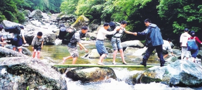 因漂流而為人所知的皇龍峽里溯溪也很過癮。走在云霧繚繞的山間,耳畔響起的是流水與巖石敲打的樂章,腳邊的野花隨風輕搖,當你還沉醉在如水墨畫般的風景里,“浮動梅花樁”、“壁虎網”、“雙龍潭”、“滾木橋”這些挑戰便一一向你襲來,盡享親水的樂趣。