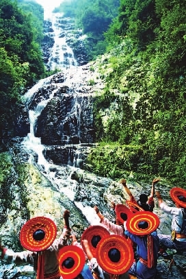 繞過寬約300米、長約1000米的石瀑群,沿著大托村層層梯田間的小路向古樹林深處出發,不多久虎形山大峽谷就出現在眼前。綿延13公里的峽谷間,數十條白練或高或低、或大或小從高崖峻石上傾瀉而下,水珠彌漫,仿佛置身仙境。碧如翠玉的深潭、涓流不息的清溪、甘甜可口的山泉無處不在。也許你還會遇見身著亮麗火辣服飾的花瑤姑娘,聽她唱上一首淳樸的山歌……