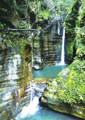 參天的古樹將峽谷層層包圍,微弱的日光中,水霧四下彌漫,這里是屬于茶馬古道的秘境。在曾是茶馬古道必經隘口的關山峽谷里,溯溪的人都會變成“爬行動物”。窄至三、四米,寬至十余米的峽谷里或緊貼巖壁走過懸于半空的棧道,或徒手攀爬攔路的亂石,或手扶鐵鏈登上垂直的峭壁,只有四肢并用才能不落入谷底那清澈見底的流水之中。
