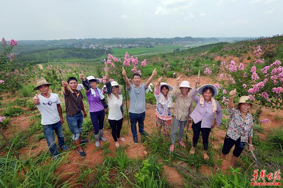 滿目的紫薇花,成片的桂花樹,還有罕見的紅葉石楠、羅漢松等珍貴樹種,隨時隨地組合成一幅立體風景畫,沖擊著我們的眼球。這是位于株洲市茶陵縣嚴塘鎮的萬樟園林現代農業產業示范園。然而6年前,這里卻是出了名的荒山。讓這數萬畝荒山披上“綠裝”的是萬樟園林現代農業產業示范園的董事長劉祖治,當地村民稱他為“扶貧隊長”。