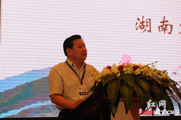 湖南省文化廳黨組副書記、副廳長禹新榮向參會的港澳代表推介文化湖南。