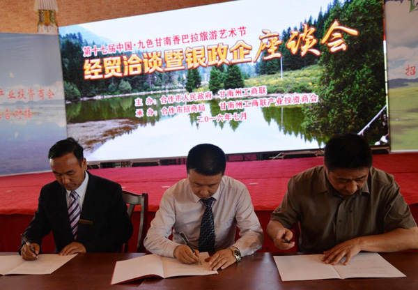 記者了解到,合作市在座談會上共簽約招商引資合同項目2項,戰略合作框架協議1項,簽約總投資額1.25億元,簽約項目分別為:總投8000萬元的藏族服飾博覽館項目,總投資4500萬元的惠羚飯店建設項目及銀政企三方合作戰略框架協議。