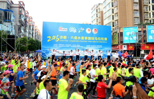 【香港商報訊】記者 黃慶松 報道:7月23日,以“清涼馬拉松,幸福六盤水”為主題的2016涼都·六盤水夏季國際馬拉松賽在六盤水市鐘山區鳳凰新區青峰路鳴槍開跑。據悉,本次馬拉松賽吸引了來自全國34個省市自治區及47個國家地區的26000名國內外優秀馬拉松選手和數萬涼都長跑愛好者參賽。
