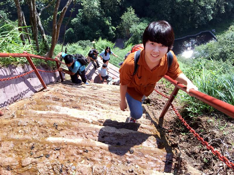 欲見神仙,必先修煉。山中近乎垂直的石階仿佛是專為了考驗來人對信仰和美景的執著。上下山途中分別有兩段80°左右的石梯,必須手腳并用才能攀爬。五體投地,方顯虔誠啊!