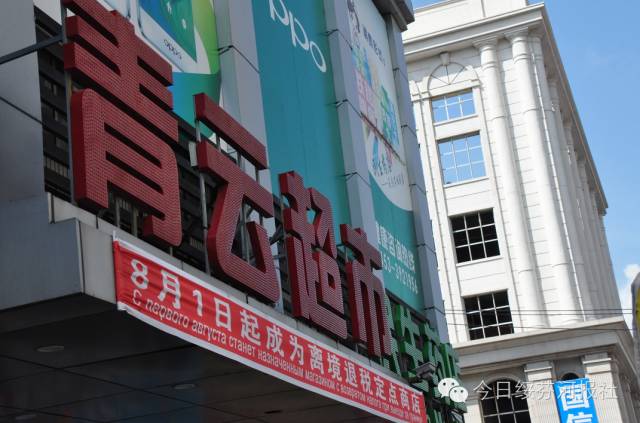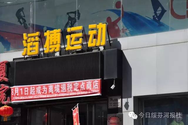 绥芬河市首批入选的离境退税商店共有5家,分别为:赛博手机卖场、青云超市、滔博体育用品、迎泽家居、冰雪帝国皮草。目前这些商店已经张贴了“退税商店Tax Free”标识,摆放了离境退税业务指引,并悬挂了离境退税宣传标语。