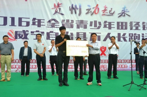 【香港商報網訊】記者 黃慶松 報道:8月2日,來自全國的10000多名長跑運動員和愛好者齊聚貴州威寧縣,參加“貴州動起來”2016全省青少年田徑錦標賽暨威寧自治縣萬人長跑活動。活動啟動儀式上,貴州省體育局分別授予威寧縣貴州省中長跑訓練基地、授予威寧中等職業學校貴州省中長跑學校的牌匾。