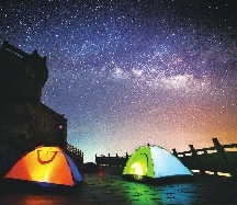 一路驅車上山,昏黃燈光下怪石林立的大圍山神秘莫測。七星嶺的山巔之上,氣溫驟降,連蚊蟲都消失不見,只剩早已擺好造型的浩瀚星空將這里的一切統統包圍。曲徑通幽的小路沿著山的輪廓綿延伸向遠方,似與天接。行走其間,群星就在手邊閃耀。若遇上山頂有霧,山腰觀星也是不錯的選擇。找一處平臺撐上帳篷,舉目遠眺,星空仿佛被山與山的間隙分割成不同的樂章,時而如光芒萬丈的霓虹,熱情奔放;時而明亮如眸,生機無限;時而如害羞的少女,溫情脈脈……還有流泉飛瀑叮咚作響地伴奏著。這是大地、流泉與星空為你合奏的青春舞曲。漸漸地,遠處的地平線上開始泛白,星星如鑲嵌在藍色海洋的鉆石,分外顯眼。一道金色的霞光慢慢涌現,一不留神,就噴涌而出占領了半邊天空,群星開始收斂、淡化,不知不覺,火紅的太陽已經升起。