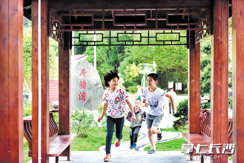 荷塘灣幸福屋場里,小朋友嬉戲玩耍快樂成長。