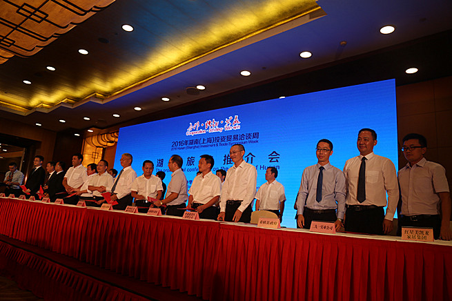 19日下午,湖南旅游借助“2016年湖南(上海)投資貿易洽談周)”(簡稱“滬洽周”)這一平臺,面向長三角地區進行了一場以“湖南如此多嬌”為主題的湖南旅游推介會。