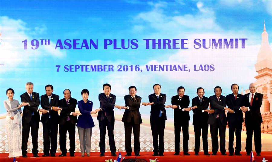 新华社万象9月7日电(记者李惠子 陈二厚)国务院总理李克强当地时间7日下午在万象国家会议中心出席第十九次东盟与中日韩(10+3)领导人会议,东盟十国领导人以及日本首相安倍晋三、韩国总统朴槿惠共同出席。老挝总理通伦主持会议。
