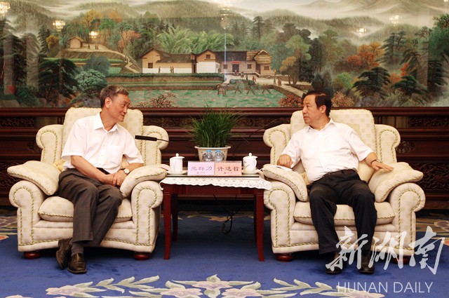 (9月18日,省委副書記、代省長許達哲在長沙會見了中國電子科技集團公司董事長熊群力。記者 趙持 攝)