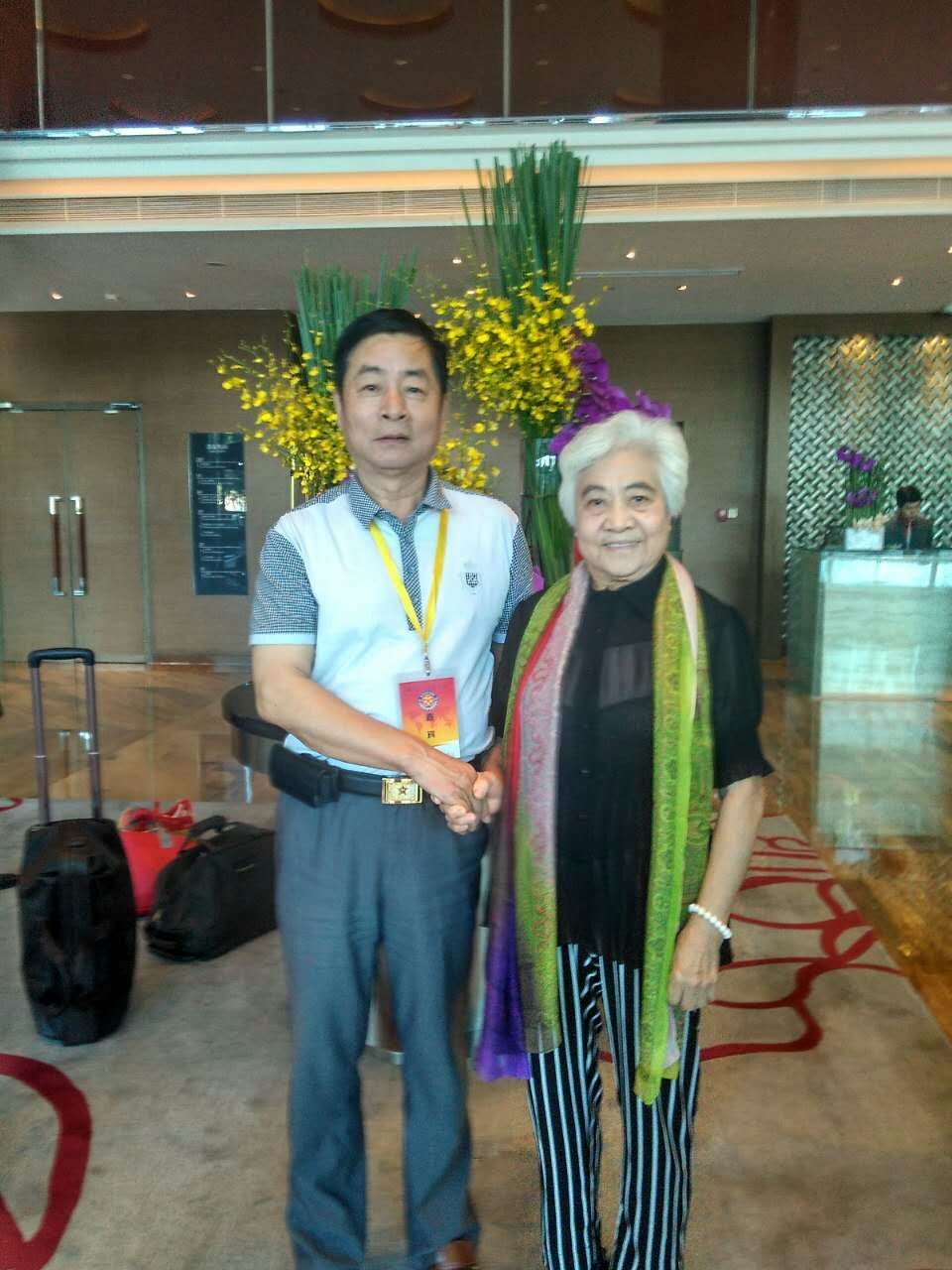 东兰文化旅遊项目专家组成員、世界至德总会常务副主席、第一湾股份董事、驻无锡办主任华伯泉(左一)与原国务院副总理吴桂贤女士合影留念(右一)