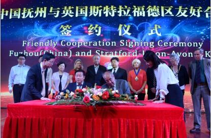 隨後,撫州市與斯特拉福德區簽訂了進一步加強友好交流合作備忘錄。備忘錄顯示,雙方鼓勵兩地研究機構加強研究湯顯祖、莎士比亞及其作品方面的交流與合作;雙方鼓勵兩地學校加強教育方面的交流與合作;雙方鼓勵兩地旅遊機構之間加強旅遊方面的交流與合作;雙方鼓勵兩地文化演出團體之間加強文化演出交流與合作。