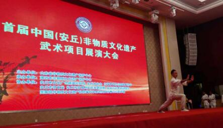 【香港商报讯】记者金山报道:由山东省非物质文化遗产保护中心主办,“孙膑拳杯”首届中国(安丘)非物质文化遗产武术项目展演大会于2016年9月23至24日在山东省安丘市新东方大酒店隆重举办。来自全国各地的国家级非遗和省、市、县级非遗武术项目传承人及台湾武林同门300余人汇聚一堂,共同交流、展示技艺。