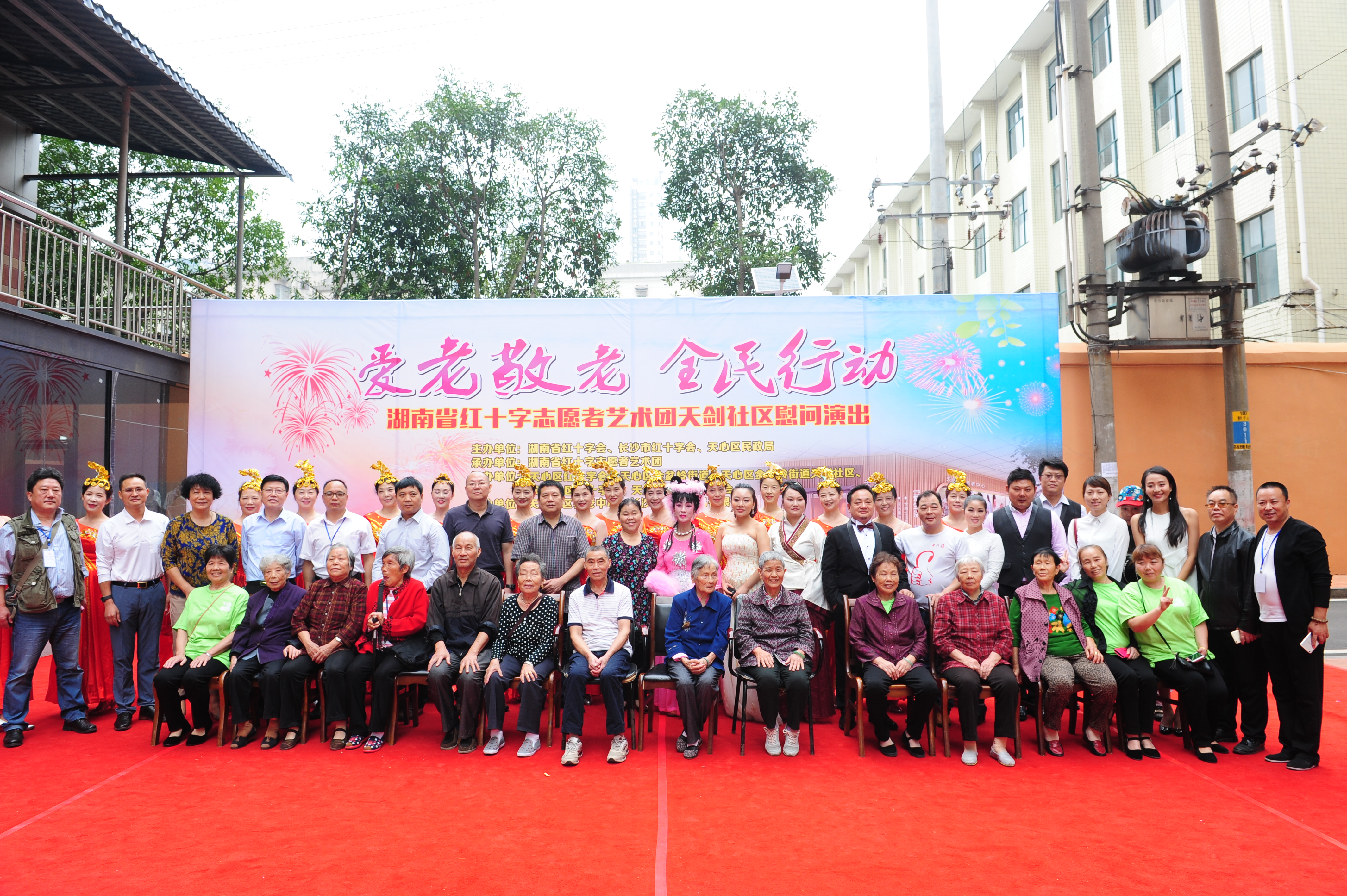 10月8日上午,天心區天劍社區廣場上人頭攢動,熱鬧非凡,來自天心區的300多名老人齊聚一堂。演出由湖南省紅十字志愿者藝術團博愛合唱隊大型原創節目《同一個愛》拉開帷幕。藝術家們表演了老人們喜愛的花鼓戲《劉海砍樵》、《小姑賢》和戲曲《夫妻雙雙把家還》;民歌手英子身著苗族服裝深情演唱《大地飛歌》;歌唱家周京霞的京韻大鼓《四世同堂》主題曲帶老人們回憶過去;省紅十字志愿者風傳奇藝術團20余名舞蹈老師傾情表演蒙古舞蹈《塔林呼恒》;楊建新老師的《金猴獻瑞》及本土笑星的小品《智力測驗》閃亮登場。節目在著名歌唱家王宣之領唱的《共圓中國夢》大型歌舞中結束。慰問演出現場,歡聲笑語不斷,掌聲此起彼伏。