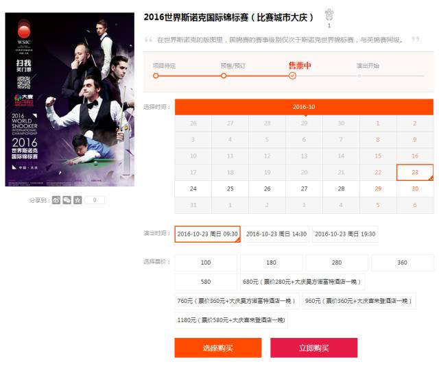 2016世界斯诺克国际锦标赛,10月23日,大庆开杆!