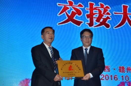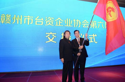 贛州市台資企業協會會長授旗交接儀式,現任會長許新居。