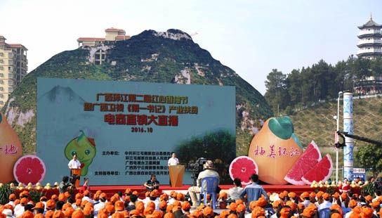 據悉,為加大對紅心香柚名優特產的宣傳力度,適應電商時代產業發展需求,環江與廣西衛視合作,利用廣西衛視《第一書記》品牌和蘇寧易購等電商大平台,舉辦香柚節和電商直銷大直播活動,從而提升環江紅心香柚的知名度,擴大影響力,並把產品推向電商市場,拓展銷售渠道,實現經濟效益最大化,為產業發展壯大和打造品牌打下堅實的基礎。