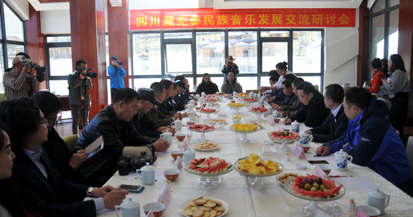 研討會現場,文化部中國社會藝術協會副主席王晉軍、中國電視藝術家協會會員夏征宇、中國音協《歌曲》雜志責編索之華、全國政協委員、中國音樂文學學會副主席胡宏偉、廣東歌舞劇院作曲家解承強、四川電子音像出版社總編輯陳川、西藏音樂家協會理事周輝、成都企業文化建設商會會長、成都星娛文化傳媒股份有限公司總經理王開盺、川港動力張旗、成都星揚文化傳媒有限公司總裁秦璞等數十位全國知名音樂文化界的專家以及甘孜州著名作曲家秋加措老師、國家一級作曲家、四川省突出貢獻的優秀專家、享受國務院特殊津貼的澤多老師、著名歌手、詞人,編劇,甘孜州歌舞團副團長真知老師等本土專家齊聚甘孜康定,積極為四川音樂產業出謀劃策。