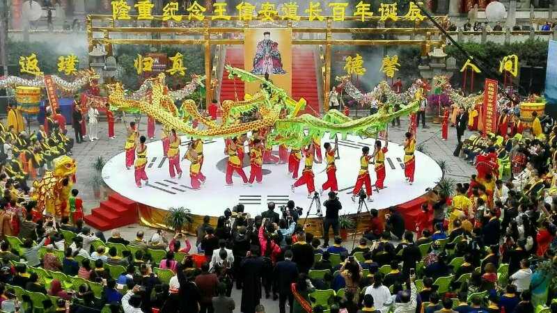 會上,湖南省道教協會黃至安會長代表舉辦方致歡迎詞,王信安道長弟子代表發表了講話。隨后,王信安道長的法脈弟子、中國道教協會理事、湖南省道協副會長朱嘉誠道長宣讀祭師賦,并主持了王信安道長銅像開光儀式和祈福法會。大型舞蹈《太極》、歌曲《傳燈》、龍獅表演《龍騰盛世》等精彩節目穿插期中。最后,廣大信眾護送王信安道長銅像至南岳玄都觀,并在玄都觀舉行了銅像安座法會。