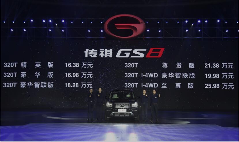 (传祺GS8共有6款配置车型,价格区间为16.38万元-25.98万元)