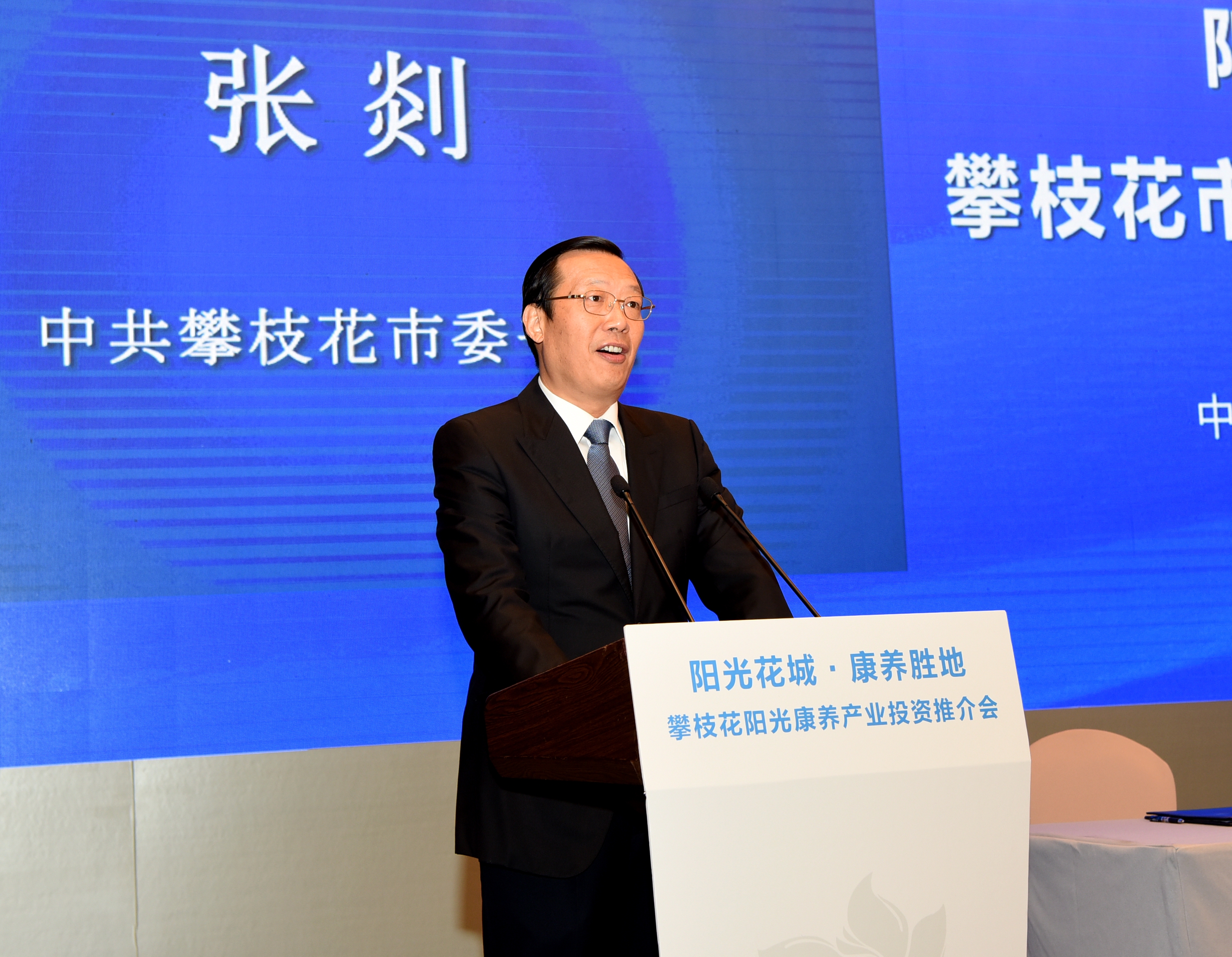 中共攀枝花市委书记张剡在推介会上激情推介攀枝花的阳光康养产业