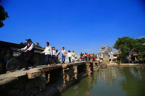 13日上午,在當地官員的陪同下,許瑞生繞村一圈,重走錢塘村古驛道。一路上,許瑞生不時用潮汕方言與村民打招呼,邊走邊看,還不時與身邊的陪同人員交流。