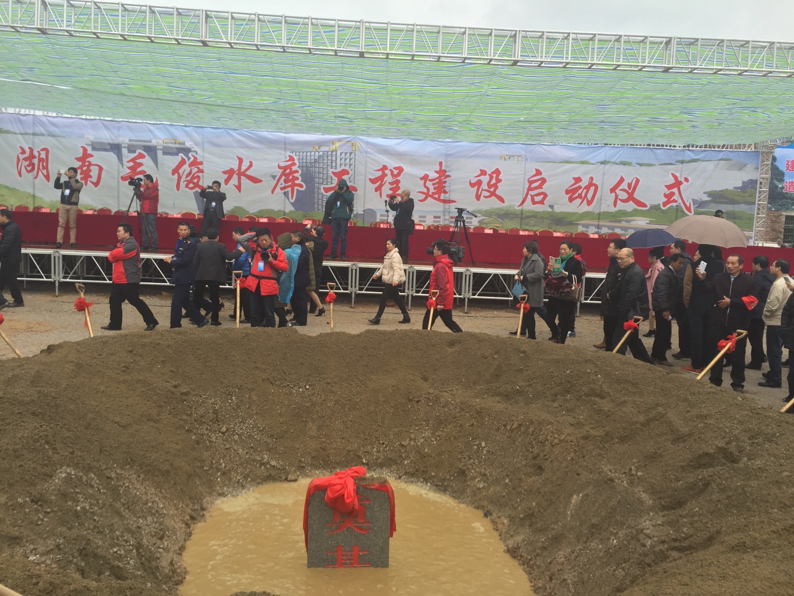 【香港商報訊】記者 唐勇平 通訊員 李先志報道 : 三藍歡歌,湘水起舞。11月23日,湖南省毛俊水庫啟動儀式在藍山縣毛俊鎮尚屏村舉行,這標志承載藍山、新田、嘉禾湘南三縣130萬人民多年夢想的國家重大水利項目進入實質性建設階段。湖南副省長戴道晉宣布啟動。參加儀式的有國家部委相關負責人、省廳局相關負責人,三縣相關負責人。永州書記陳文浩致辭,永州副市長唐湘林主持儀式。藍山書記秦志軍匯報毛俊水庫工程情況。