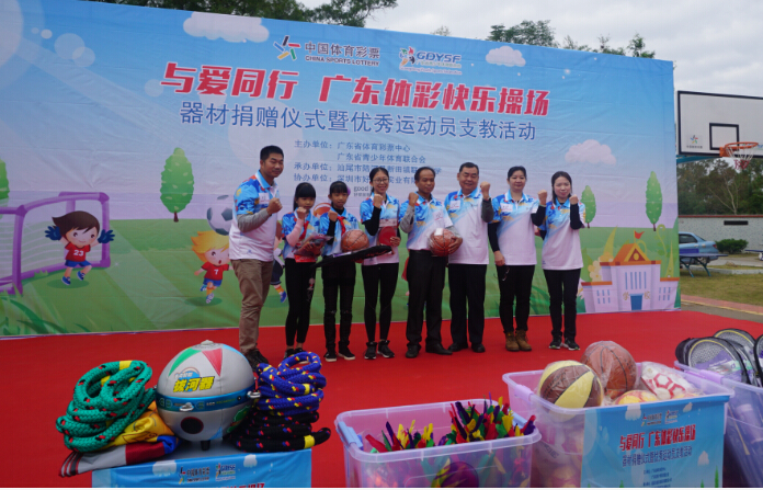 此次“與愛同行·廣東體彩快樂操場”大型公益活動,由廣東省體育彩票中心牽頭,與廣東省青少年體育聯合會共同發起,為鄉村學子們送來體育器材并邀請優秀運動員駐校支教。