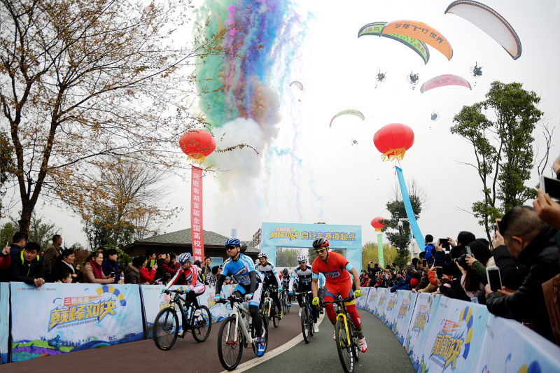 據介紹,本次比賽主要圍繞南湖進行,賽道距離約為28公里。湖南衛視新聞主播魏哲浩作為山地車組的明星隊長也參與了比賽,他告訴記者:“本次比賽不是要決出勝負,主要是傳達競技的精神,也是鼓勵更多的市民可以走到戶外,參與到自行車等運動中來。”經過激烈的角逐,最終西華大學囊括了總體三項競速冠軍。