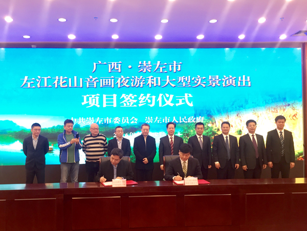 【香港商報網訊】記者李依玲報導:記者12日從廣西﹒崇左左江花山音畫夜遊和大型實景演出新聞發會上獲悉,目前,北京山水盛典文化產業有限公司與左江花山投資股份有限公司簽署了《左江花山音畫夜遊和大型實景演出協定》。