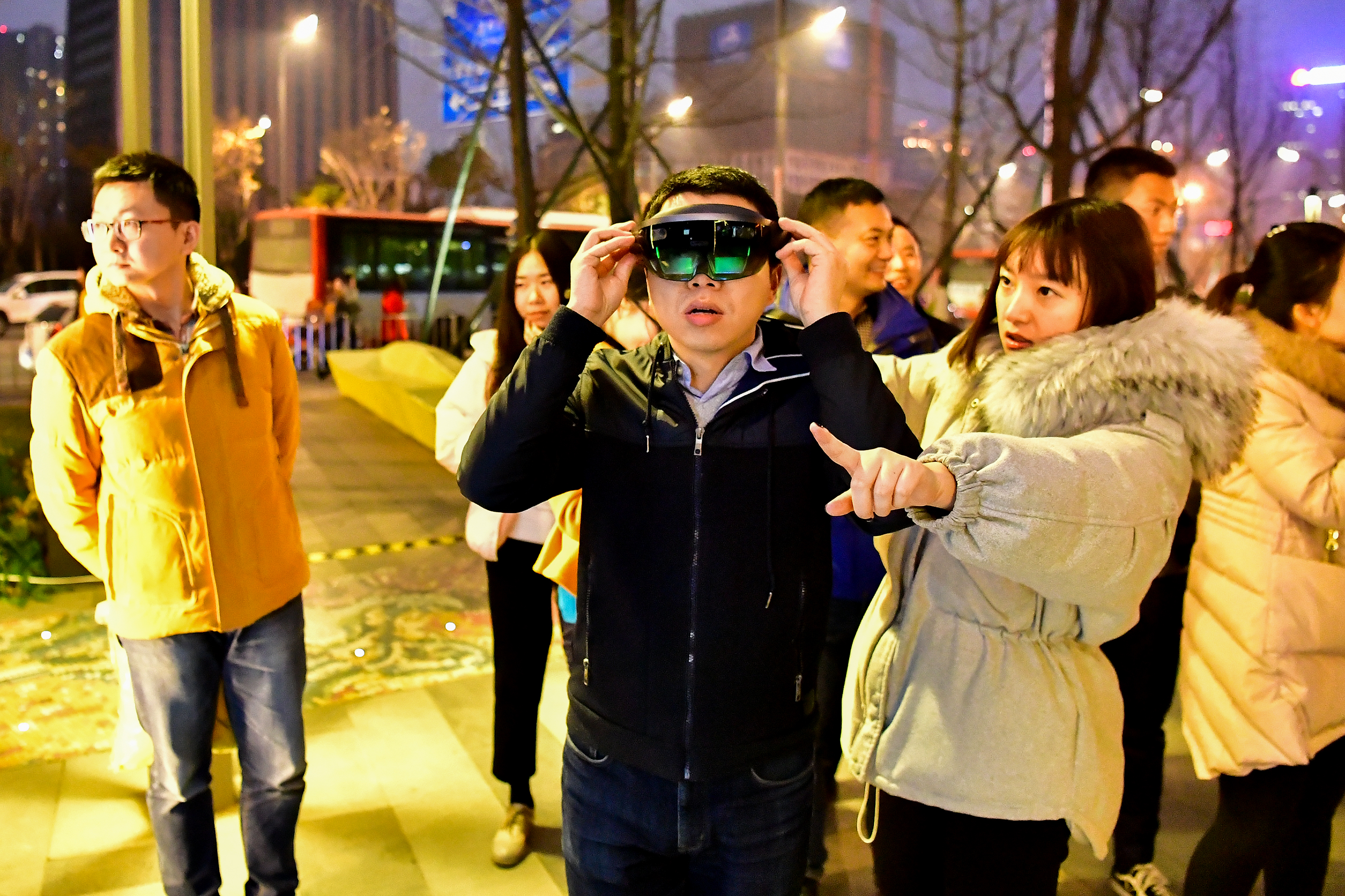 【香港商報网訊】記者郭代勤報道:12月30日,由成都高新區主辦的“創業夜市”菁蓉嘉年華在菁蓉國際廣場拉開帷幕。和硅谷的創客集市能夠吸引到谷歌、微軟等明星企業支起小攤,向創客、普通市民以及孩子們展示高科技產品一樣,本次菁蓉嘉年華也專門開辟園區明星企業主展區,展示微軟增強現實頭盔、傻瓜式操作無人機等高科技產品。