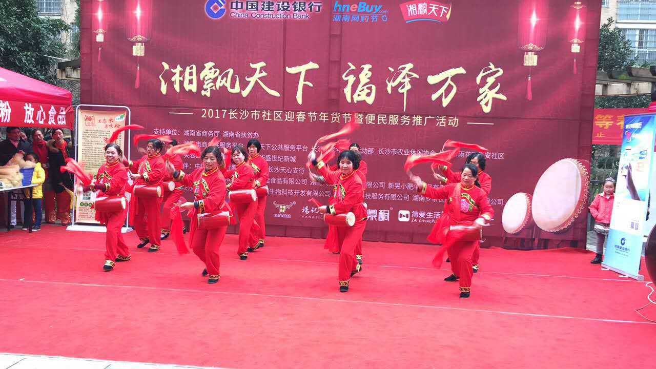 【香港商報訊】記者 齐宁报道 : 為了豐富長沙市民迎春文化生活,滿足長沙社區居民一站式購物需求,享受便民服務,同時,讓我省名優特品牌和行業優質服務更加深入人心,湘飄天下公共服務平臺、建設銀行湖南省分行攜手聯合湖南電子商務公共服務平臺、長沙市老年協會活動部和相關社區共同舉辦2017長沙市首屆社區迎春年貨節暨便民服務活動,1月8號上午在雨花區泰禹社區正式啟動。省商務廳副巡視員劉飛、市場運行處科長鐘美陸、省經濟和信息化委員會原副巡視員楊月華、省農業委員會原巡視員黃永明、建設銀行長沙天心支行黨委委員、副行長朱金榮、泰禹社區負責人和50多家企業代表出席了本次活動。建行長沙天心支行為建行湖南省分行此次活動長沙地區的承辦單位。