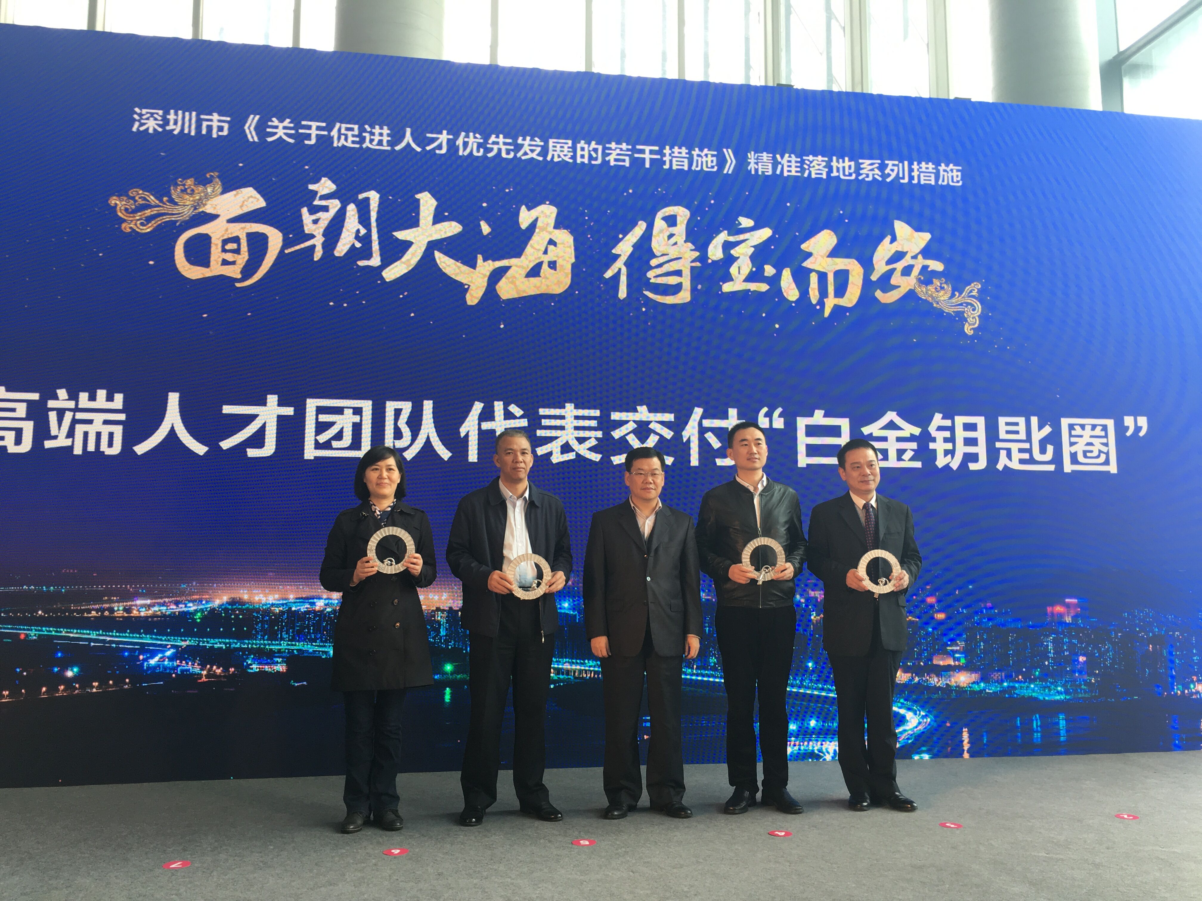 在活動現場,市區領導向寶安區“1000工程”首批新引進人才代表交付“銀鑰匙”,向新認定的區高層次人才頒發證書及首期獎勵金,向首批申請住房政策的高層次人才交付“金鑰匙”。寶安區委書記黃敏向南方醫科大學深圳醫院、亞太衛星集團、寶安人民醫院、寶安中醫院等高端人才團隊代表交付“白金鑰匙圈”。 人才是深圳持續創新發展,堅持不懈打造“深圳標準、深圳質量”的第一資源。 日前,寶安區六屆二次黨代會召開,在寶安區委書記黃敏所作的黨代會報告中,“人才”一詞先后出現了15次,是屬于高頻詞匯之一,可見該區求賢若渴的態度。黃敏在報告中提出,寶安作為深圳的經濟大區、產業大區、實體經濟之區,將以實際行動為實現深圳“努力建成現代化國際化創新型城市和國際科技、產業創新中心”戰略目標作出應有貢獻,堅定不移貫徹落實打造“深圳質量、深圳標準”的決策部署,打造“深圳質量、寶安智造”新標桿,保障“中國制造2025”安全啟航。