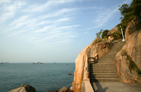 珠海外伶仃島天生麗質,以其石奇水美、幽雅恬靜、空氣清新而聞名遐爾。外伶仃島雄奇峻秀,主峰伶仃峰高達311米,島上四時花木蔥籠,景色美不勝收。登高望遠,可見周圍群島星羅棋布,逐浪飛舟,更深覺波濤激蕩,滄海橫流。熏風麗日里,伶仃洋上蔚蘭相接,海天一色;薄霧黃昏時,霞霏映海,漁舟唱晚;云霓雨霧中,長洲島、太平山、青馬大橋等香港景物時隱時現,恍如夢幻中的海市蜃樓。